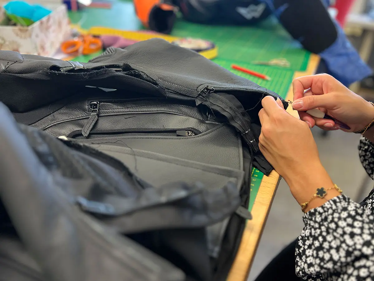 - Reparaturen: Nähte flicken, Risse schliessen, Reissverschlüsse ersetzen.